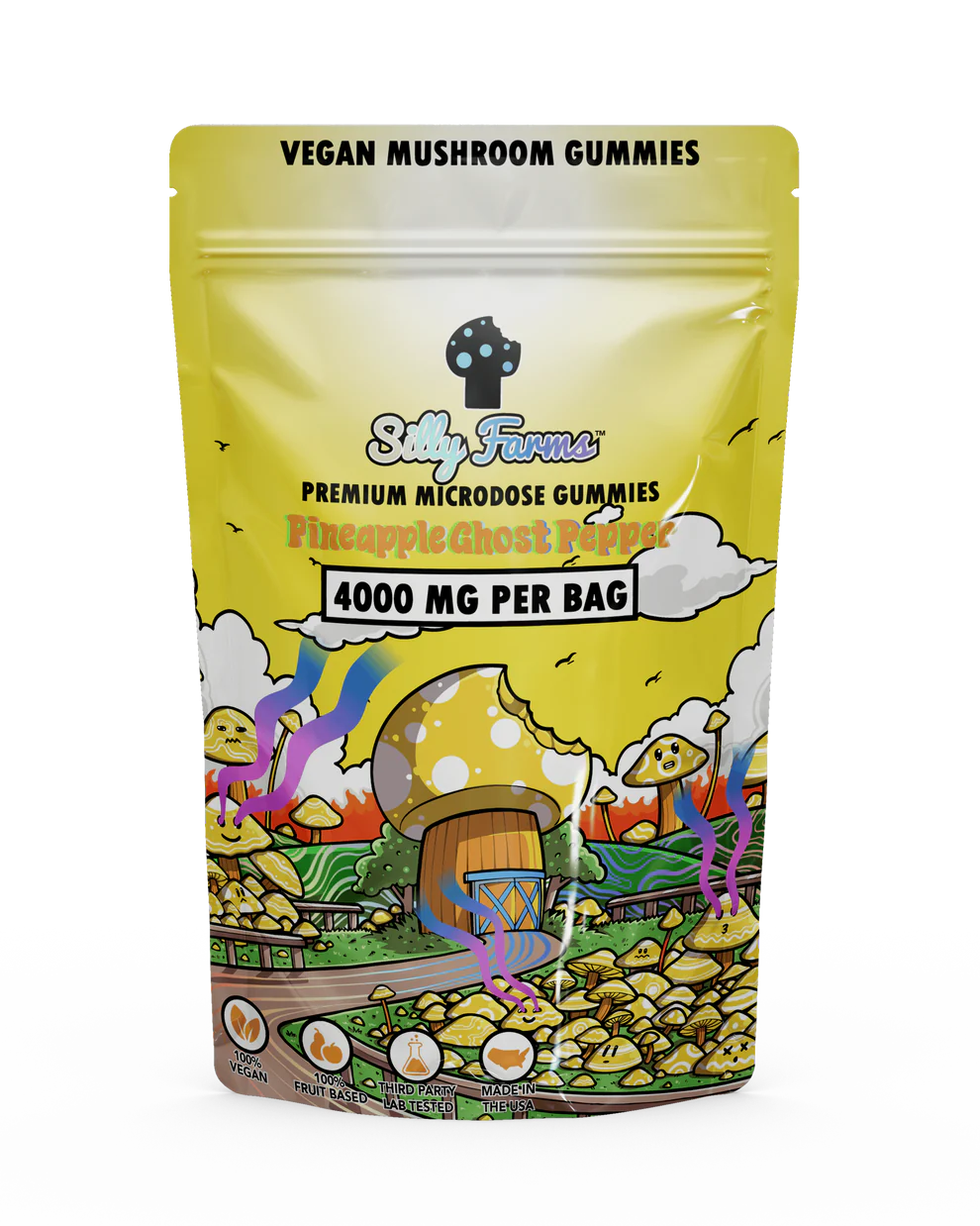 At Shroom Store UK, London’s licensed magic mushroom dispensary, we proudly present Silly Farms Pineapple Ghost Pepper Gummies — a bold and tropical psilocybin gummy that combines sweet pineapple flavor with the fiery intensity of ghost pepper. Designed for adventurous users, these gummies deliver a potent, flavorful, and controlled psychedelic experience.